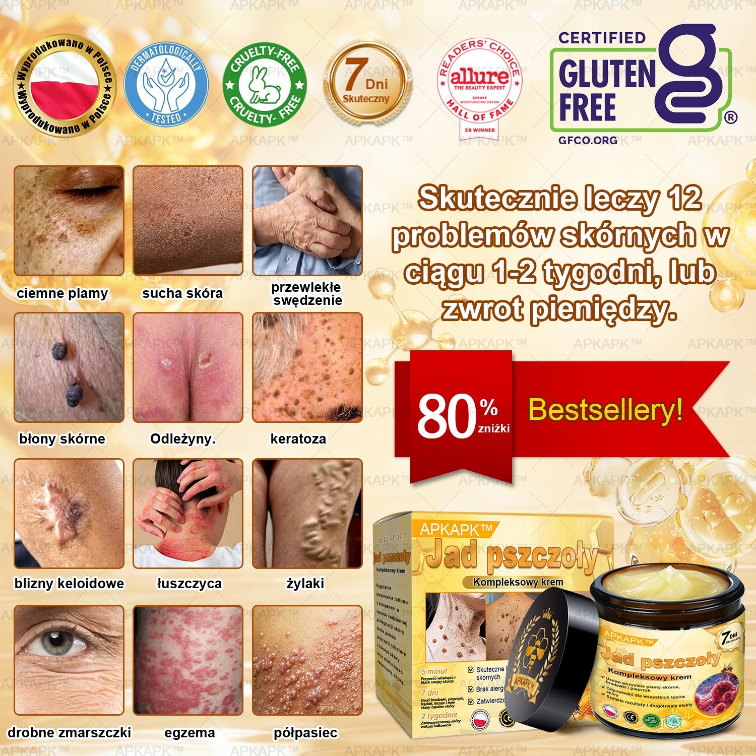 ΑPΚΑPK™ Jad Pszczoły Kompleksowy Krem🥇pomaga w leczeniu problemów skórnych, takich jak: zmarszczki, blizny, plamy pigmentacyjne, rozstępy, trądzik, łuszczyca, egzema, zmiany skórne, podrażnienia, stany zapalne i inne problemy skórne🔥🔥